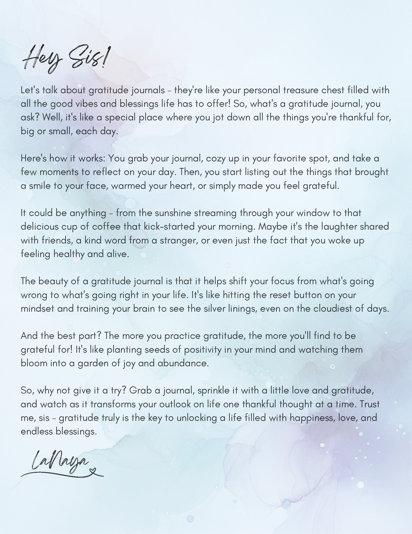 How to Use: Download the Digital Black Girl Gratitude Journal to your device. Each day, take a few moments to complete the prompts, reflect on your blessings, and write down what you are thankful for. Use the journal regularly to cultivate a habit of gratitude and self-love.