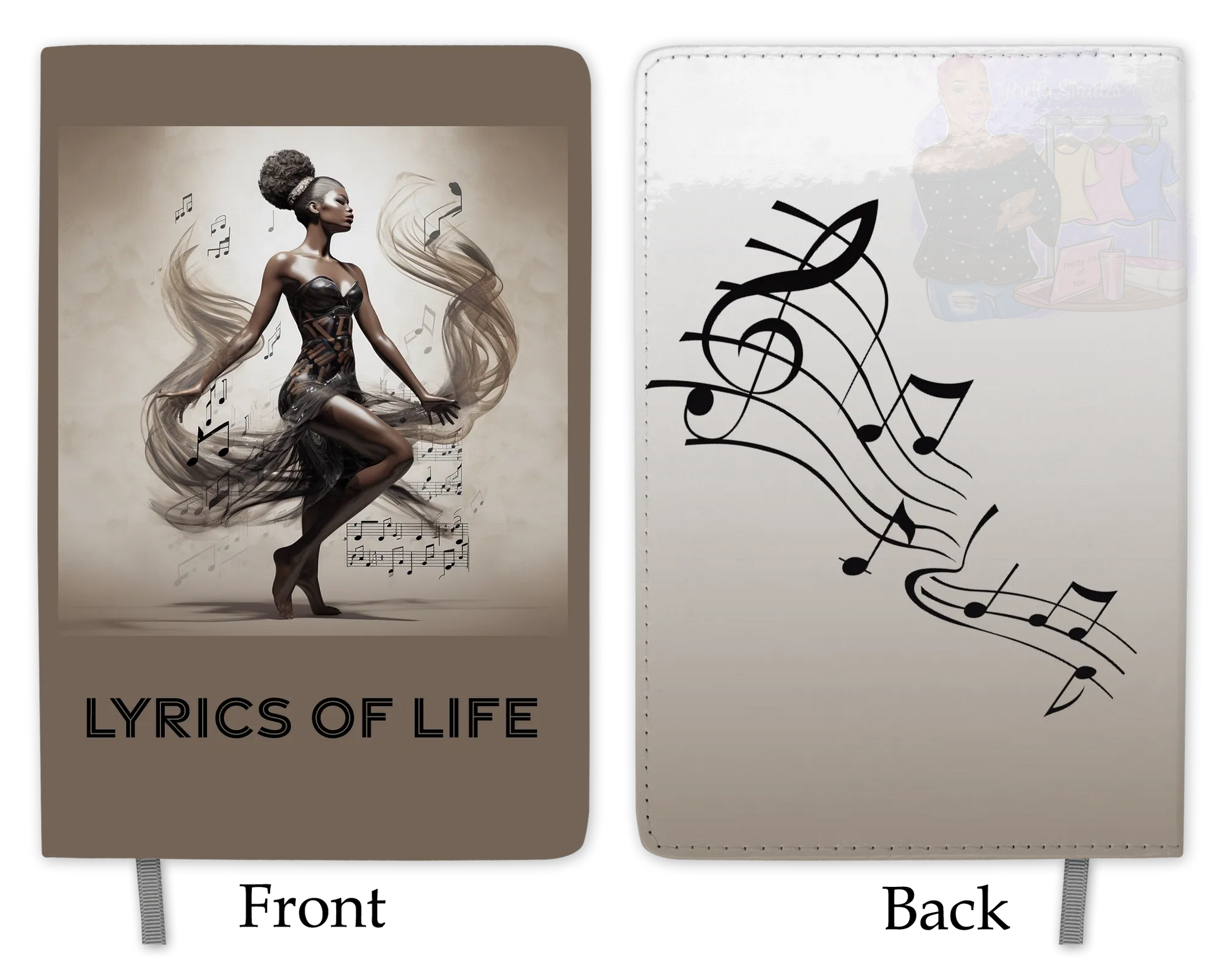 Capture the rhythm of your journey with the Lyrics of Life Journal. Featuring a stunning image of a graceful Black woman surrounded by flowing musical notes on the front, and elegant music symbols on the back, this journal is perfect for expressing your thoughts, dreams, and the melodies of your soul.